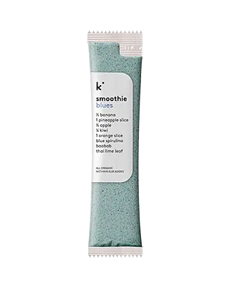 All organic ingredients: banana, pineapple, apple, lucuma, orange, kiwi, baobab, apple fiber, thai lime leaf, blue spirulina.